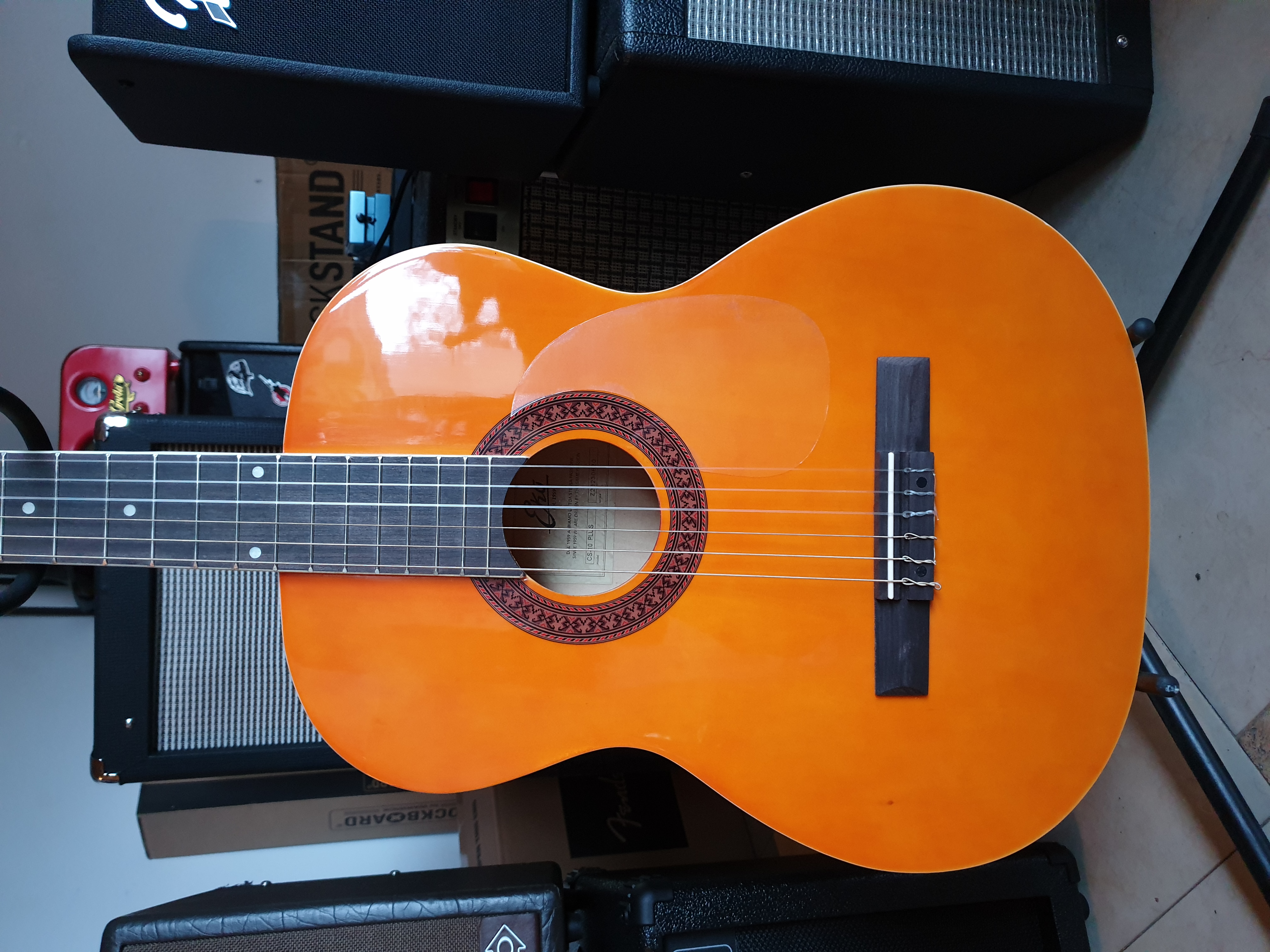 Chitarra classica della serie "Studio". Top in Tiglio, fasce e fondo in Tiglio laminato, manico e tastiera in Betulla. Ottimo qualità-prezzo, data la presenza di dot sulla tastiera.