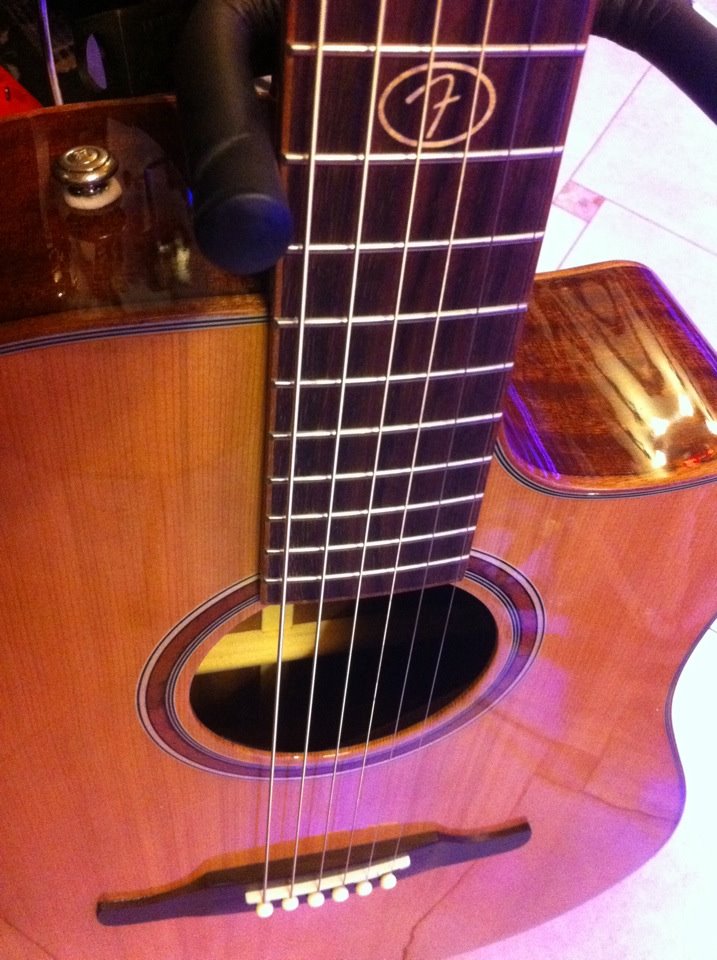 Chitarra Dreadnought con finitura lucida Naturale - Top in massello di abete con Catene quartesawn scavate a X - Rosetta massellata incastonata - fondo e fasce in Mogano - Neck mogano e plaissandro - Cutway Venetian style e paletta Viking larga 70s - neck con profilo a C - Hardware invecchiato - amplificazione Fishman Isys III sviluppata per il marchio Fender